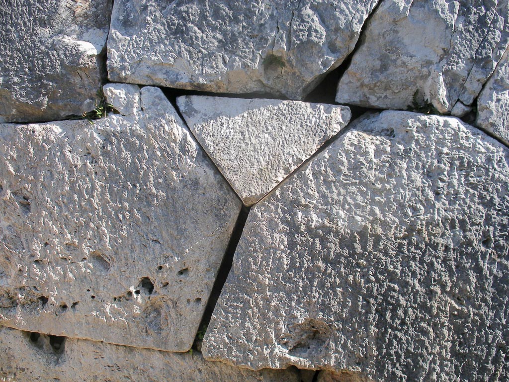 D'altra parte, prima dell'invenzione della sega, è intuibile che il passaggio dalla seconda alla terza maniera sia stato possibile solo dopo l’introduzione dello scalpello. Possiamo vedere segni evidenti lasciati da uno scalpello nelle pietre del muro di Figura 2. La forma poligonale nella faccia a vista era dettata dall’utilizzo più economico, dal punto di vista dell’energia impiegata, dei blocchi ricavati in cava, mantenendosi il più vicino possibile alla forma generalmente irregolare di questi e avere così il minimo sfrido.