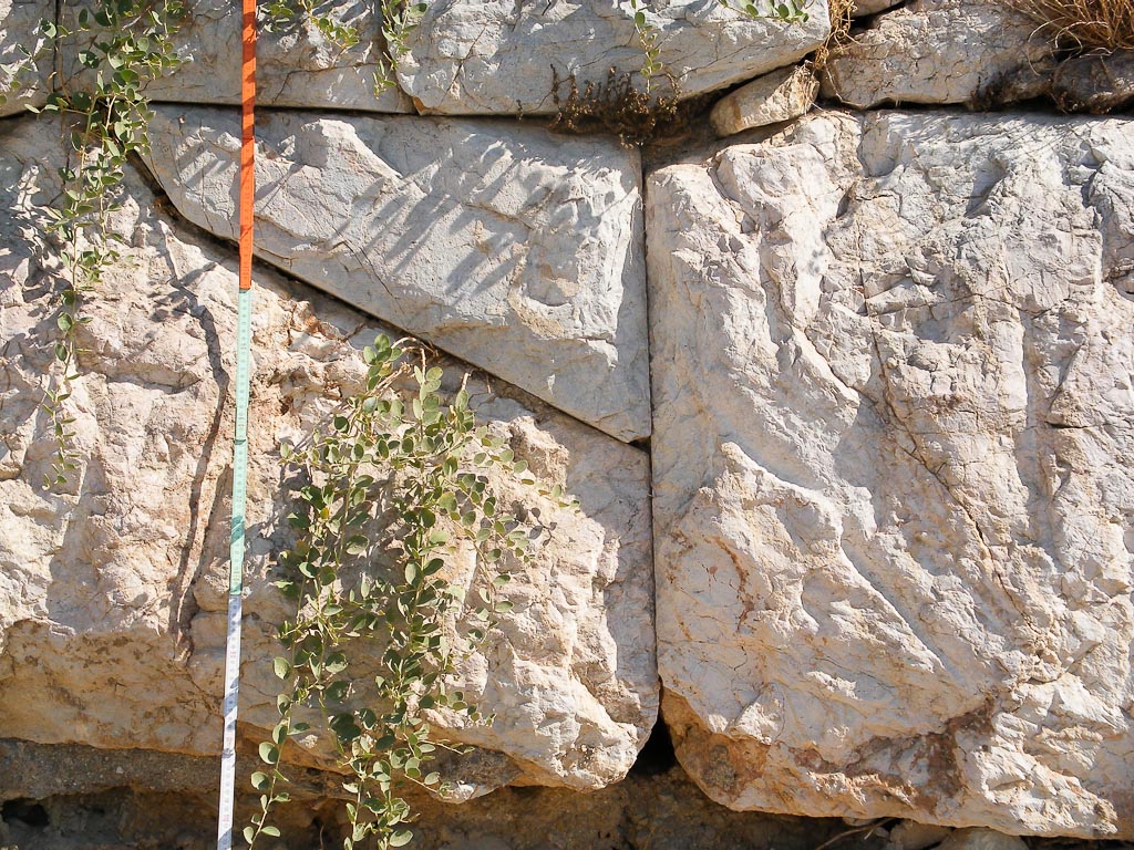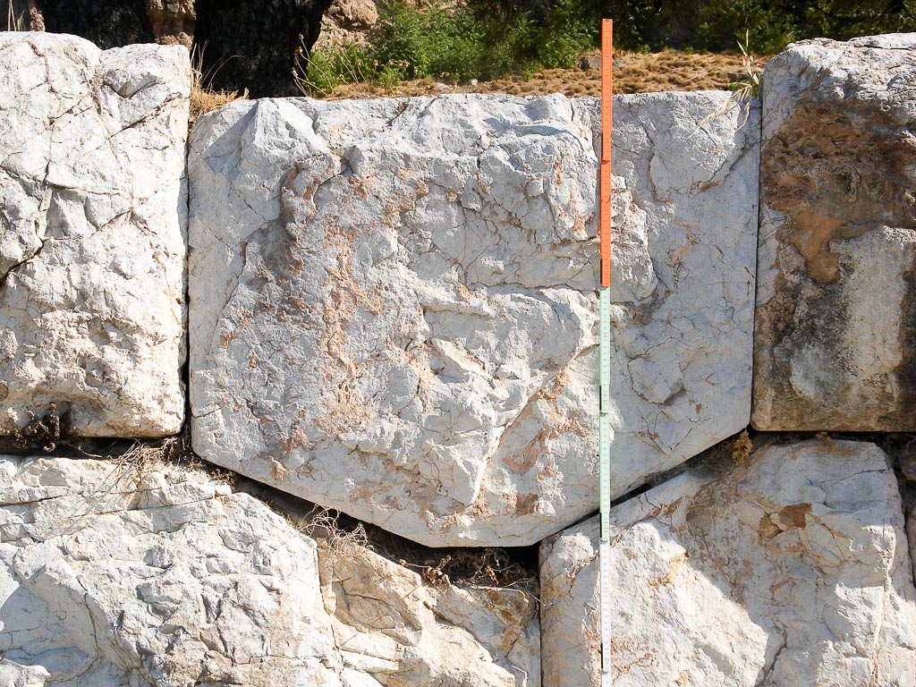 Figura 14 – Milos. Zona del teatro romano. I valori dell’altezza delle pietre, perfettamente squadrate, risultano essere esattamente multipli del digitus romano (1,85 cm) o della sua metà.