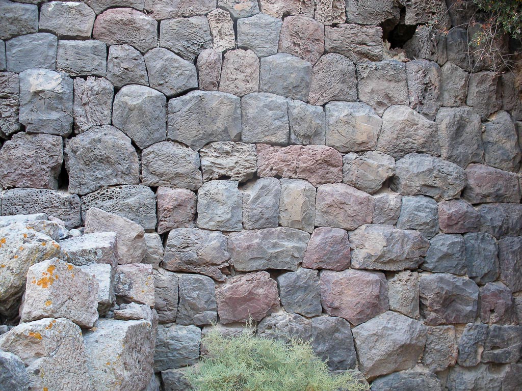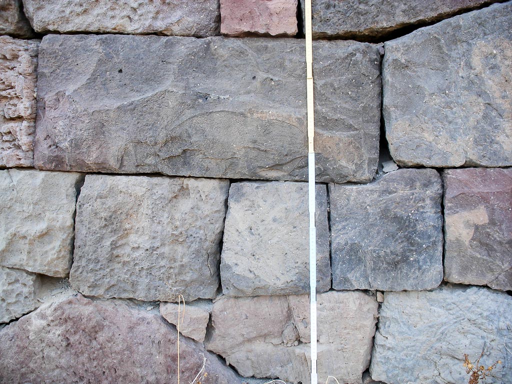 Quando si tratta di blocchi di ridotte dimensioni, dell'ordine di 40 o 50 cm, è più economico sagomare sul luogo blocchi, magari riciclati, a forma di poligono irregolare con l’uso di martello e scalpello e la tecnica del prova e correggi, oppure con l'aiuto di goniometro e metro (come è il caso della Figura 13), anziché usare blocchi regolari e squadrati, che devono essere preparati in cava, trasportati con precauzione fino alla zona di impiego e non sempre possono essere facilmente riutilizzati come tali. E si tratta quindi di distinguere tra un semplice lavoro di tipo “artigianale” e uno più complesso, fatto in serie, che potremo chiamare “industriale”.