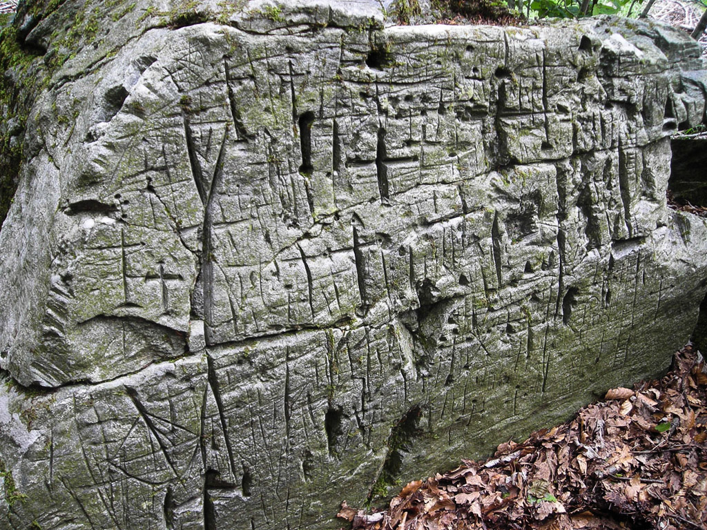 Nella storia dell’uomo non era la prima volta che una roccia veniva intaccata: le incisioni rupestri più antiche risalgono al paleolitico superiore e riguardano rocce anche molto resistenti; le tecniche sono o con picchiettatura (percussione) o con raschiatura a graffio (Figure 165 e 166, da Wikipedia). Generalmente però sono trattamenti molto superficiali; quando una roccia veniva scavata per formare concavità, chiamate “coppelle” (Figura 167), adatte a raccogliere acqua piovana, la profondità raggiunta era di pochissimi centimetri.