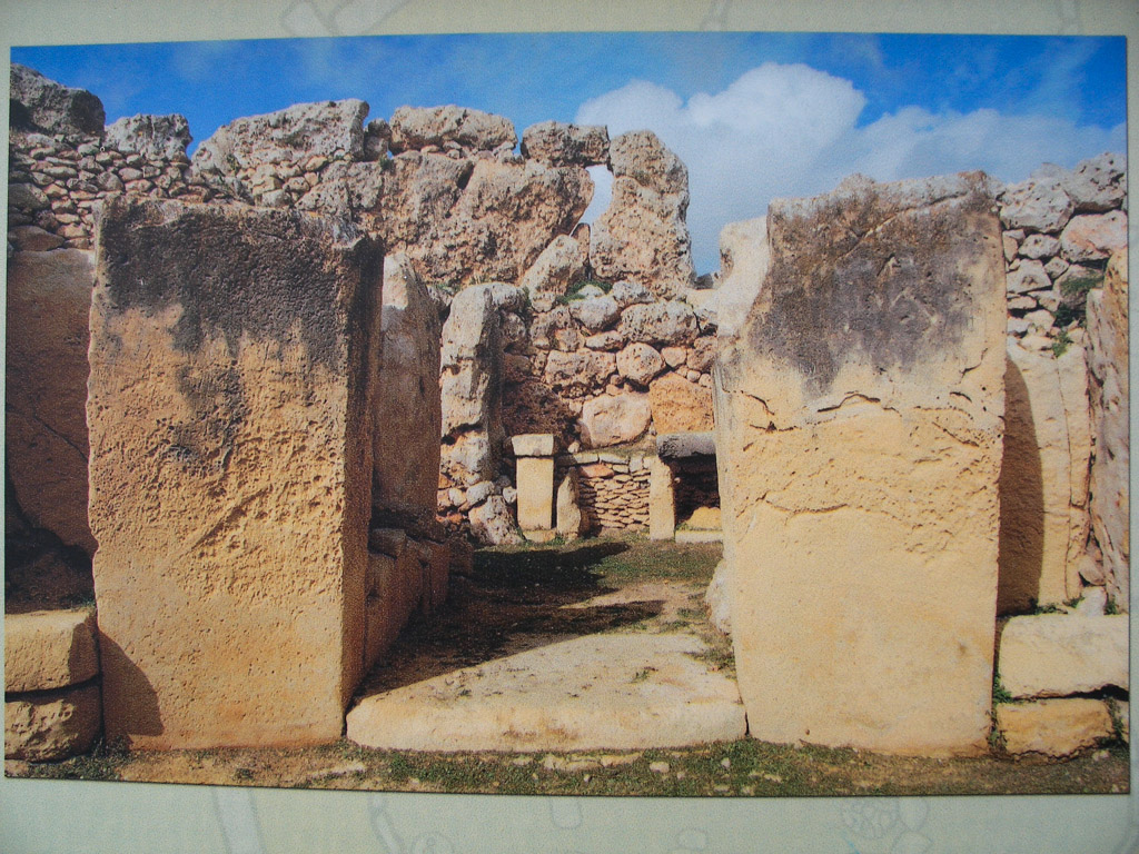 Osserviamo ora i templi di Ggantija (Figura 172), Hagar Qim (Figura 173, da Sacred destinations.com) e Mnajdra (Figura 174). Le immagini mostrano come essi si presentano all’esterno, e ancora vediamo che è presente il secondo tipo (a Mnajdra, a destra e a sinistra dell’immagine). Ma se gli stessi templi vengono osservati dalla parte interna, le cose cambiano: nelle Figure 175 e 176 vediamo l’accesso, a sud-est, di Ggantija con coppie di ortostati del quinto tipo. All’interno di questo santuario si aprono nove celle, di cui quella disposta più a sud-ovest è riportata nella Figura 177. Qui un altare è stato appoggiato a una parete di pietre grezze, con l’interposizione di una cortina di pietre tendenzialmente squadrate; altare e cortina sono del quinto tipo. Il contrasto tra le pietre grezze e la parete del quinto tipo è pronunciato (Figura 178).