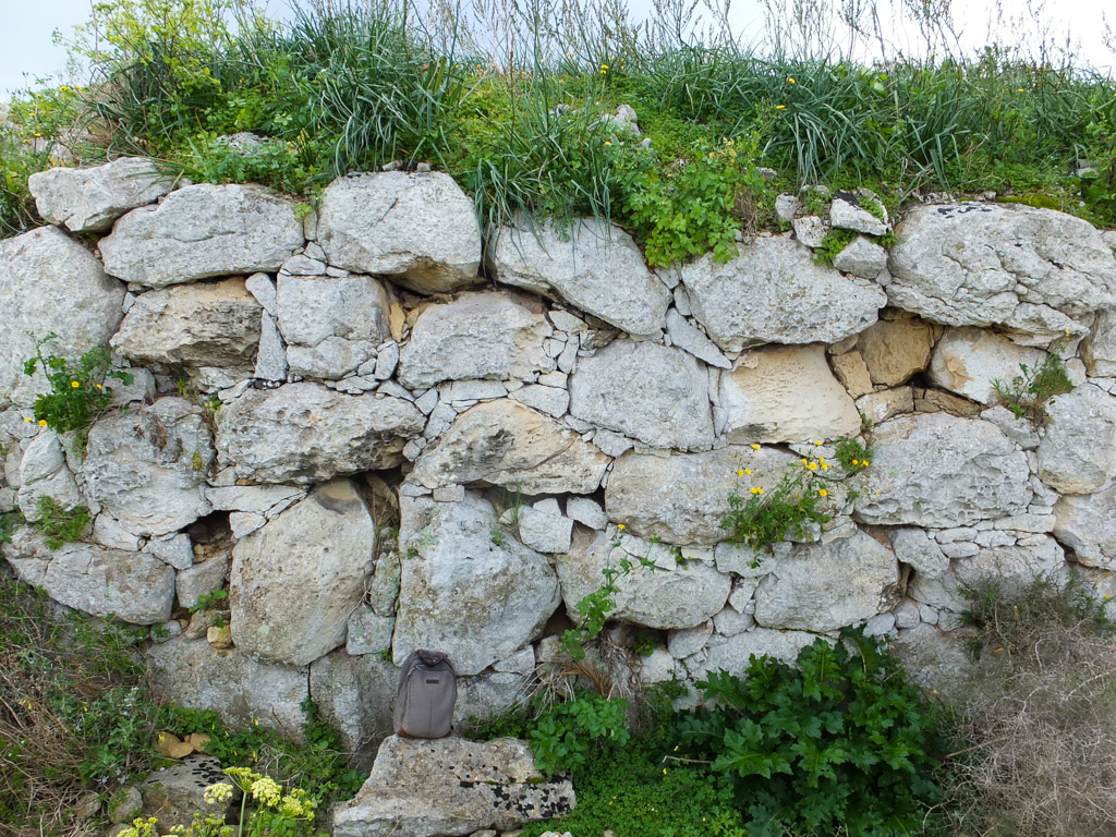 Secondo tipo o “tipo delle pietre grezze selezionate”: vengono scelte pietre con una faccia piana, che viene disposta verso l’esterno del muro, così che la parete finale non abbia sporgenze importanti. Gli spazi vuoti vengono chiusi con pietre più piccole. Esempi sono le mura di Roselle (Figura 2) e Borg in-Nadur a Malta (Figura 3).