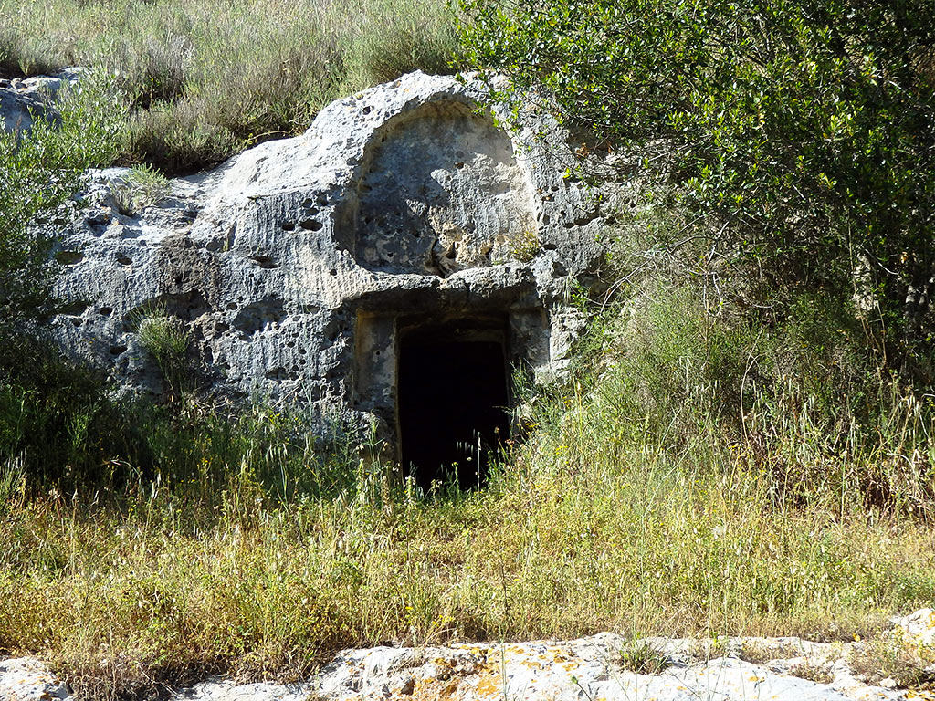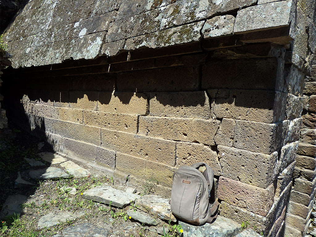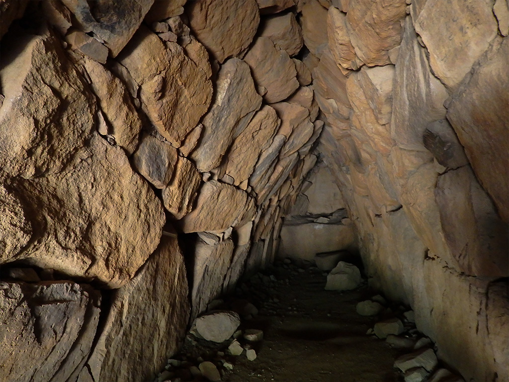 Nella seconda modalità il corridoio ha una sezione interna a forma di triangolo: esso si chiude in alto con l’aggetto crescente delle pietre, che si toccano in sommità, come avviene tipicamente nei corridoi e nelle nicchie dei nuraghi; la Fig. 23 si riferisce a Is Concias di Quartucciu. Nella stessa tomba l’apertura non è scavata ma ottenuta dall’impilamento di pietre a formare i due brevi piedritti, sormontati da un architrave (Fig. 24).