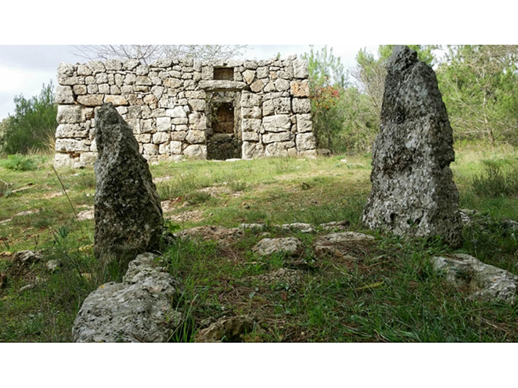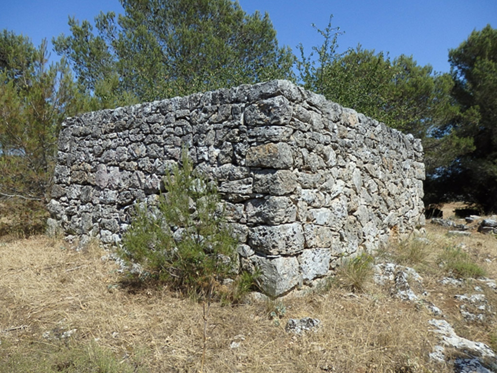 Viene segnalata la presenza della particolare costruzione mostrata nelle foto di Figure 1 e 2; essa si trova ai margini orientali del Bosco della Gravinella e a ovest della località Serra Morsara, 4,3 km a sud di Santeramo in Colle, in provincia di Bari. La costruzione ha le coordinate 40°45’17,40”N 16°45’58,00”E ed è al centro di un’area di quasi 0,5 ha, allungata per 100 m in senso NO-SE e larga al massimo 50 m. L’area confina a sud-est con la strada rurale di Via Iazzitiello, da cui è separata da un muro a secco (Figure 3, 4 e 5).